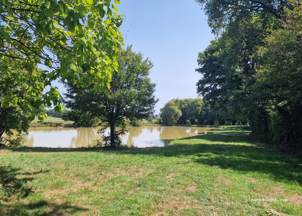 Très calme, pêche gratuite, stationnement gratuit. 6 camping car lac je pense . Recharge eau et électricité à 5km à vaige . Etang très poissonneux en blanc . Mairie et agent très agréable .