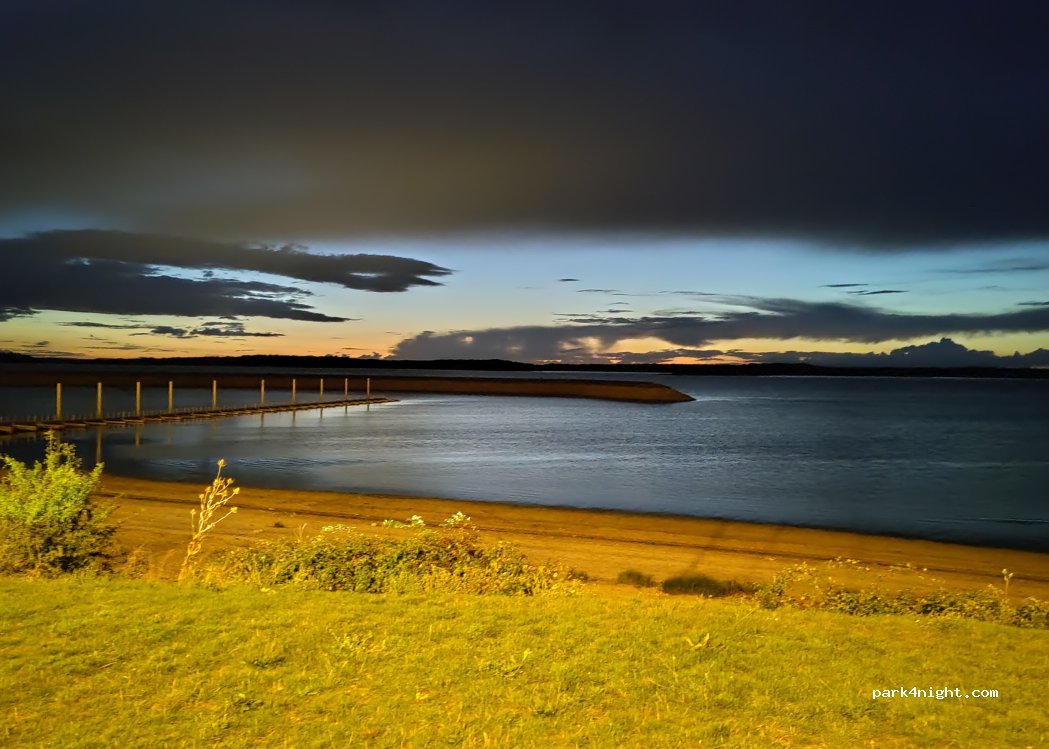 A 2 pas du lac, avec un magnifique couché de soleil. Beaucoup de place pour se garer avec des poubelles et tables de pique-nique. Restaurant à proximité, douches et sanitaires sur la plage