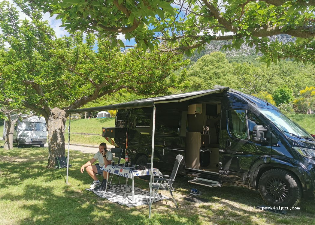 Emplacement compliquer nous avons un L3H2 nous nous somme garée au dessus du parking à camping car on étais mieu placée hier que dans les hauteur. Sanitaire correct mais un peut ancien. Il y’a un petit snack et épicerie en bas très pratique nous allions à la plage avec notre canoë ( attention faut du souffle et des bras ).
