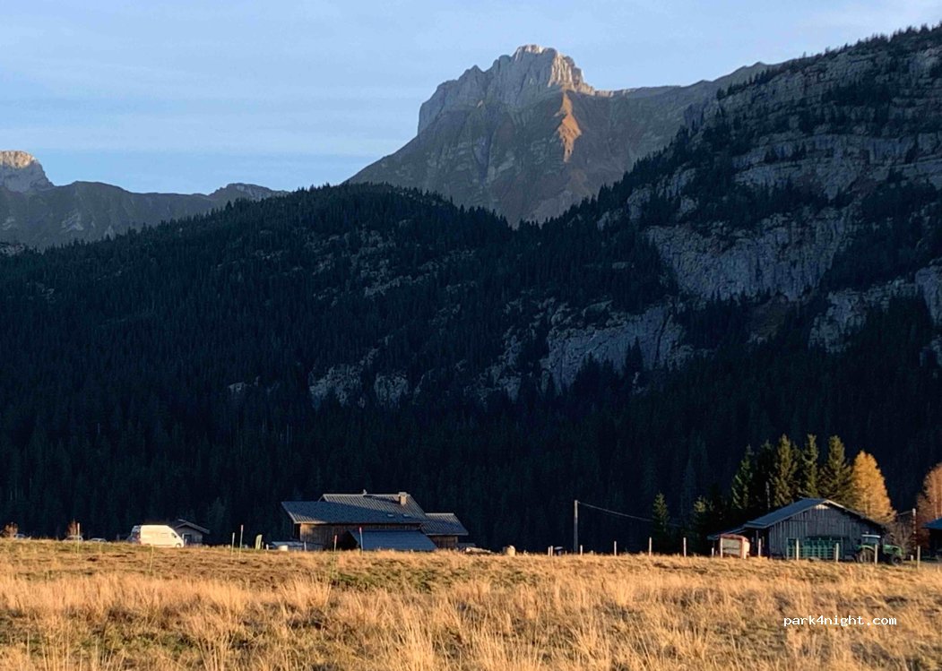 Endroit magnifique avec plusieurs départ de randonnée au choix. Lever de soleil en haut de la pointe d'Andey, superbe ! Dormi 1 nuit sans problème.