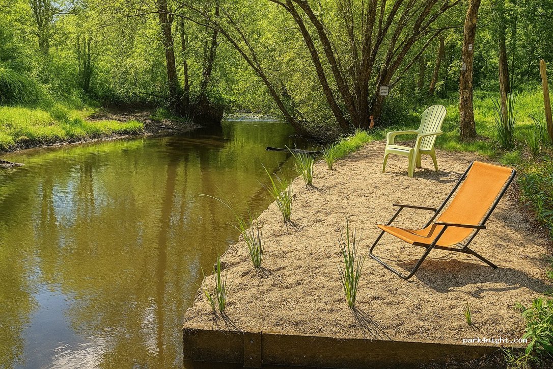 ✅ Plage ombragée en bord de RIVIERE - Aménagement plus naturel, que vous plébiscitez et plus écologique qu'une piscine. Profondeur progressive de la rivière de 0.30 m à 2.00 m, même en été