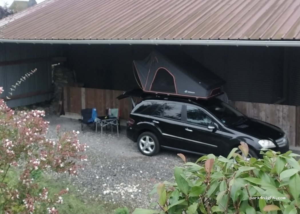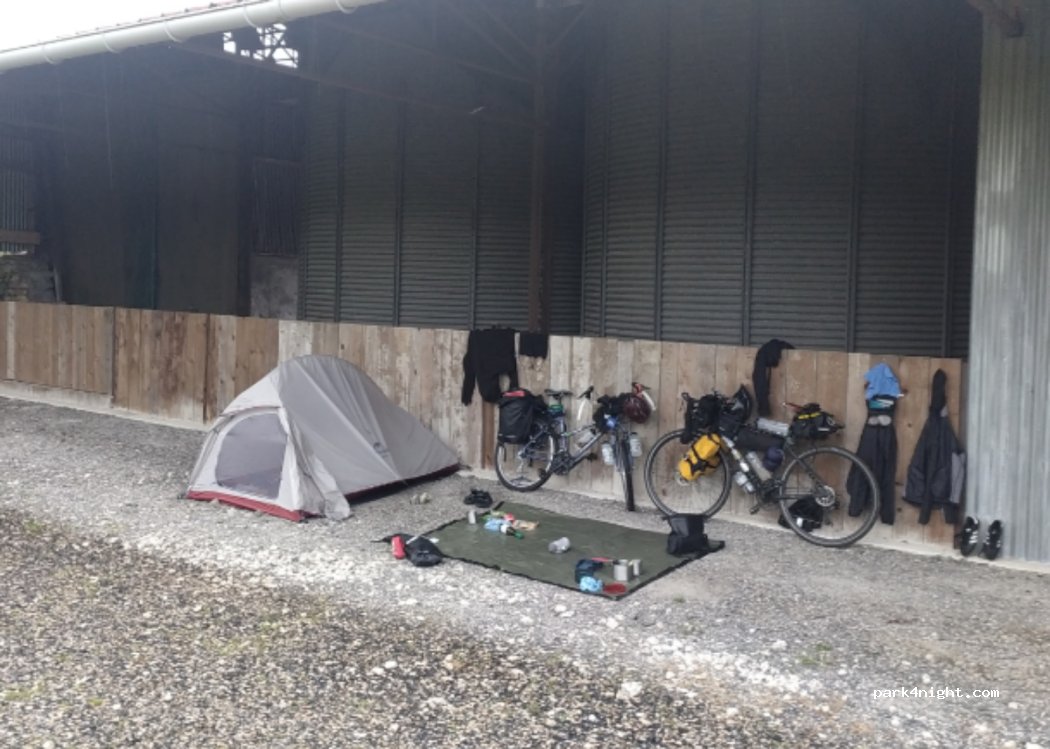 Un accueil très sympathique, un orage était prévu pour la nuit donc pratique d être abrité! Le monsieur nous a gentiment mis des planches pour que les tentes ne soit pas sur le gravier ( vu l'orage annoncé, la pelouse aurai été moins confortable. Possibilité de pain au réveil et une petite attention pour notre petit déjeuner. Un grand merci pour cet accueil!