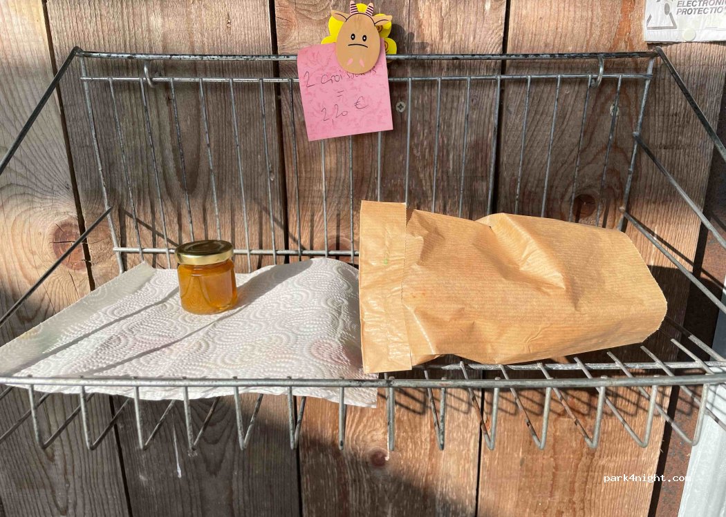 zeer rustige plaats om te overnachten, s morgens wordt het brood samen met een fijne attentie achtergelaten aan een haakje, elektriciteit en water gratis voorzien. je geeft uiteraard een vrije bijdrage. mooie omgeving om te fietsen, wij zijn fan!