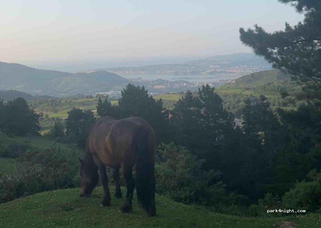 Lieu magique pour une nuit au calme avec une vue sur la baie de Bilbao. Plusieurs emplacements possible pour van ou camping car. Réveil entouré de chevaux et brebis. S’il vous plaît laissez ce lieu comme vous l’avez trouvé, nous avons du ramasser les déchets d’autres personnes (gobelets,lingettes)