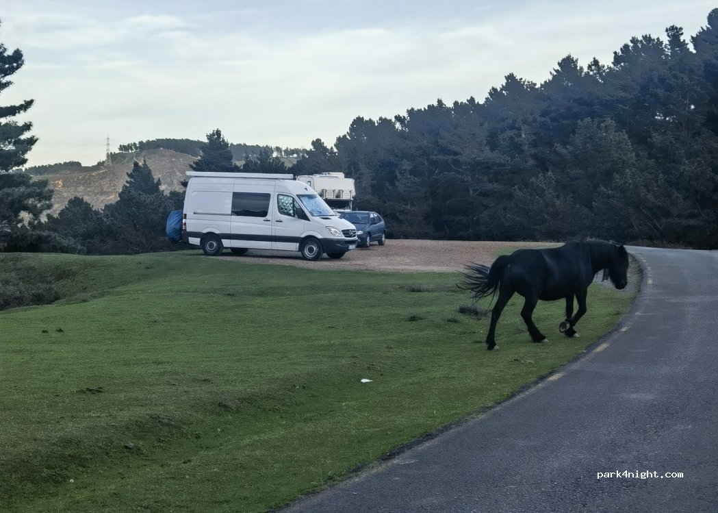 Stunning views - the parking is on the road but very quiet and we felt really safe. No services - please keep it as you find it! Bit steep up to the area (and one lane for two way traffic at points) but the roads were quiet when we went up so it was ok.