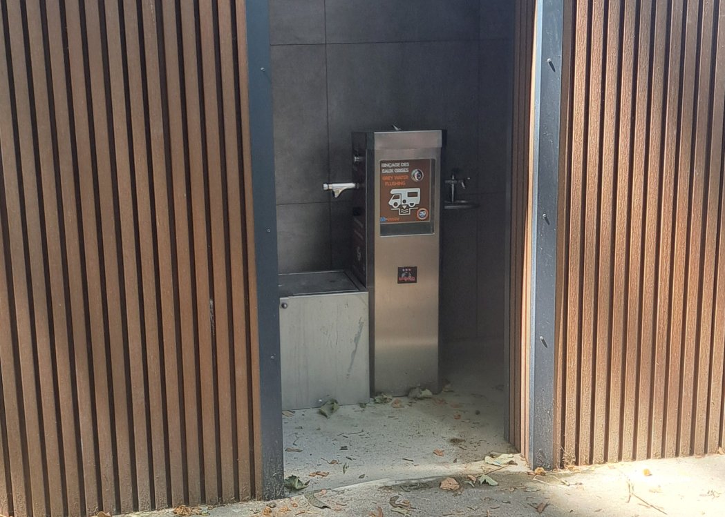 l'endroit pourrait être idéal, nous y sommes passés le 30 décembre, tout fonctionnait parfaitement, mais malheureusement aujourd'hui le robinet a été cassé du couo impossible d'avoir de l'eau et de vider la cassette, après signalement ils sont venus, pour réparer ? et bien non ils ont juste démonté le robinet cassé et mis du rubalise sur la porte ? difficile de trouver de l'eau dans la région