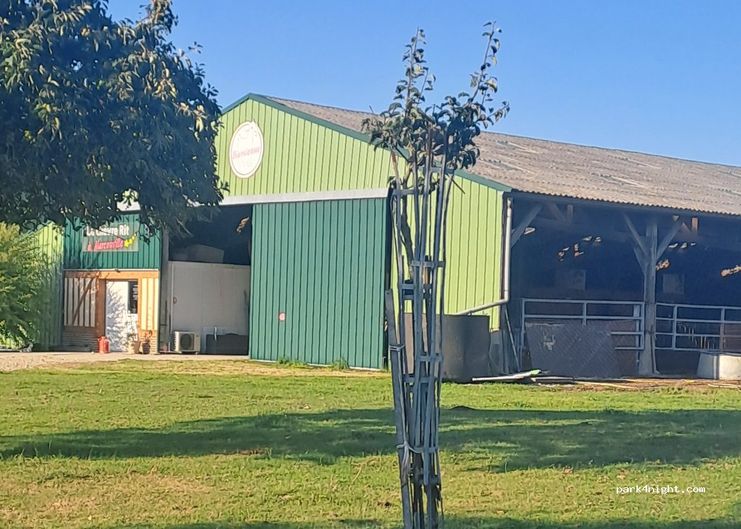 Farm, the goat laughs in Marcouville, quiet and secure parking, you can enjoy the animals (goats and cows), possibility of attending the milking of the goats from March to December around 6.30 p.m. and you can taste the products made from milk goats (yogurts, cheeses) and good apple juice from the orchard: the small store is open Tuesday to Sunday, from 5 to 8 p.m. On arrival, even if the owners are absent, do not hesitate to settle in the central area.
