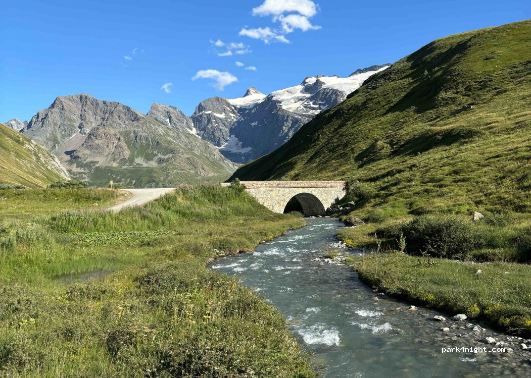 Je staat hier net binnen het Vanoise natuur park. Een prachtig beschermd gebied. In het park mag niet gekampeerd worden. Dat wil zeggen, geen, zelfs niet éèn, pin in de grond. Wij waren hier met een auto met daktent. Met een goede -uitrusting, -wandelkaart plus -conditie kan je hier prachtige meerdaagse, van hut naar hut, trektochten maken.