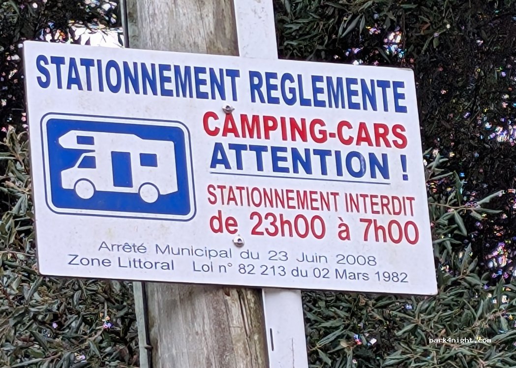 Pas vu d'interdiction de stationner la nuit, impeccable pour une nuit et aller à la plage