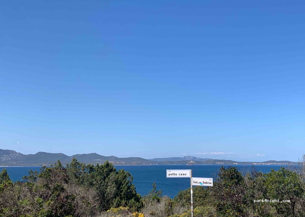 Gratis parkeren voor 4x4 campers tot 6m. Zand-/grindweg. 500 m van het prachtige strand Poltu Casu. heel stil en vredig. Geen service. Parkeren op de begane grond is zonder uitzicht. Parkeren is alleen mogelijk met een 4x4, met uitzicht, maar loopt schuin af langs het pad en overal.