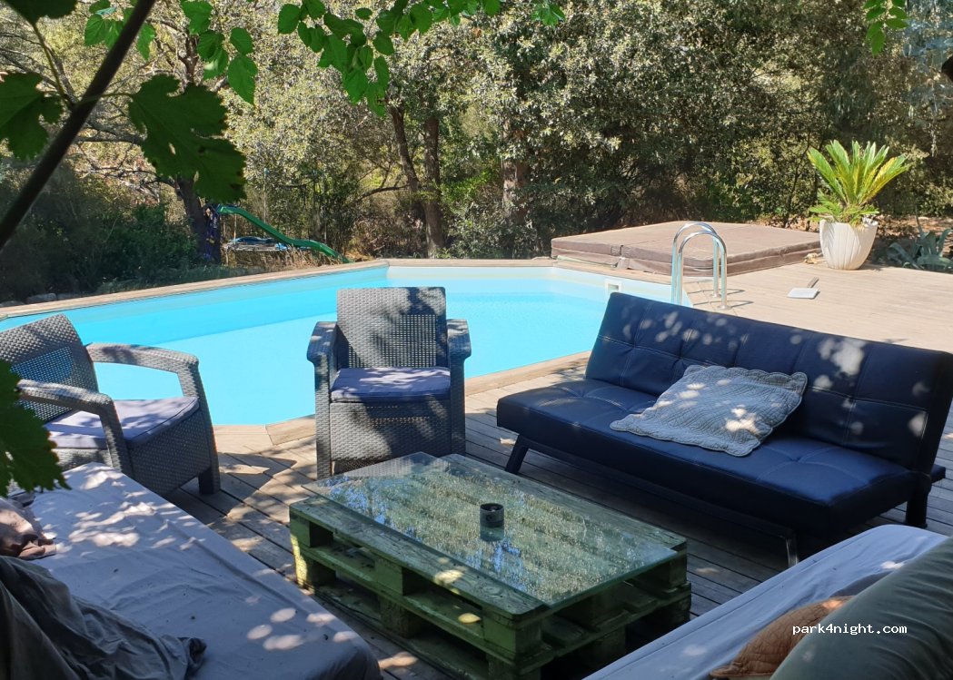 Excellent accueil et une belle soirée chez Virginie et Arold. Emplacement à l’ombre. Petit verre d’accueil☺️piscine avec douche. Douche possible en extérieur ou s’il n’y’a pas trop de monde en chambres d’hôte à l’intérieur. Pas dérangeant vu la chaleur.15€ la nuit + 5€/pers. dîner avec tout le monde 25€ par pers, repas préparé par leur soins, spécialités. C’est avec plaisir que nous reviendrons!