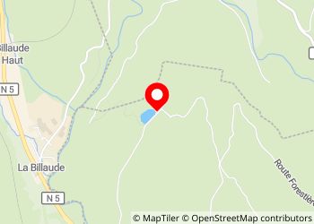 Small pond lost in the middle of the forest in the Haut Jura nature reserve, 2 picnic tables, a few hikes and belvederes nearby.