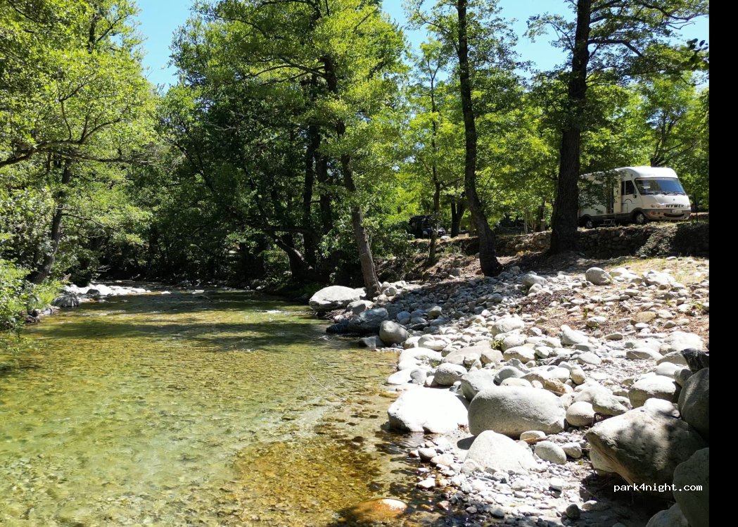 Beautiful, quiet campsite. Close to the town center and a large supermarket. Clean restrooms and friendly owners. 8 pitches available by a beautiful mountain river (Restonica). Bar, bread roll service, swimming in the stream, 15-minute walk to Corte, uphill