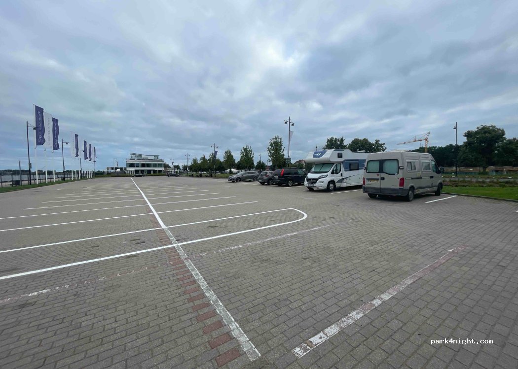 July 2024 now 6€ for 12 hours during the day and 3€ for 12 hours at night. If you don’t fit into one parking space there’s a big area next to it for large vehicles which is hardly any more expensive. Easy walking distance to town. We stayed 2 nights: 3 or 4 other vans there too. You can pay at the machine. Ok restaurant at the far end. Cars come in the morning but leave in evening.