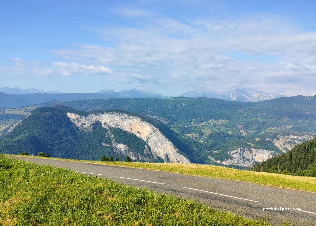 Effectivement une vue magnifique pour une halte pique-nique et visite du joli village mais attention stationnement devant des chalets donc à notre avis, pas conseillé pour une longue durée ou pour la nuit.