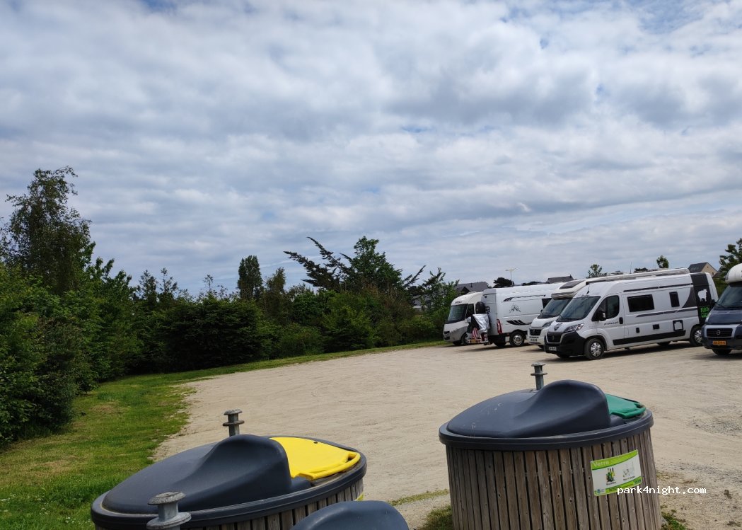 Parking gratuit pour une quinzaine de camping-cars. Sol stabilisé mais très poussiéreux par temps sec et venté. Beaucoup d'aller et venu autour car grands parkings à voiture pour aller à la magnifique plage des Chevrets. Trois grands bacs poubelle (Verres, recyclables et déchets.
