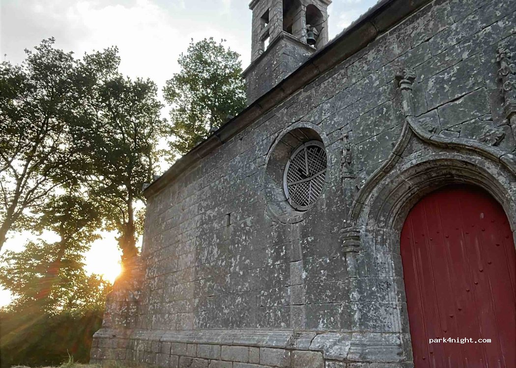 Joli spot dodo, à côté d’une belle chapelle et d’un champ. Table de pique-nique. Très calme.