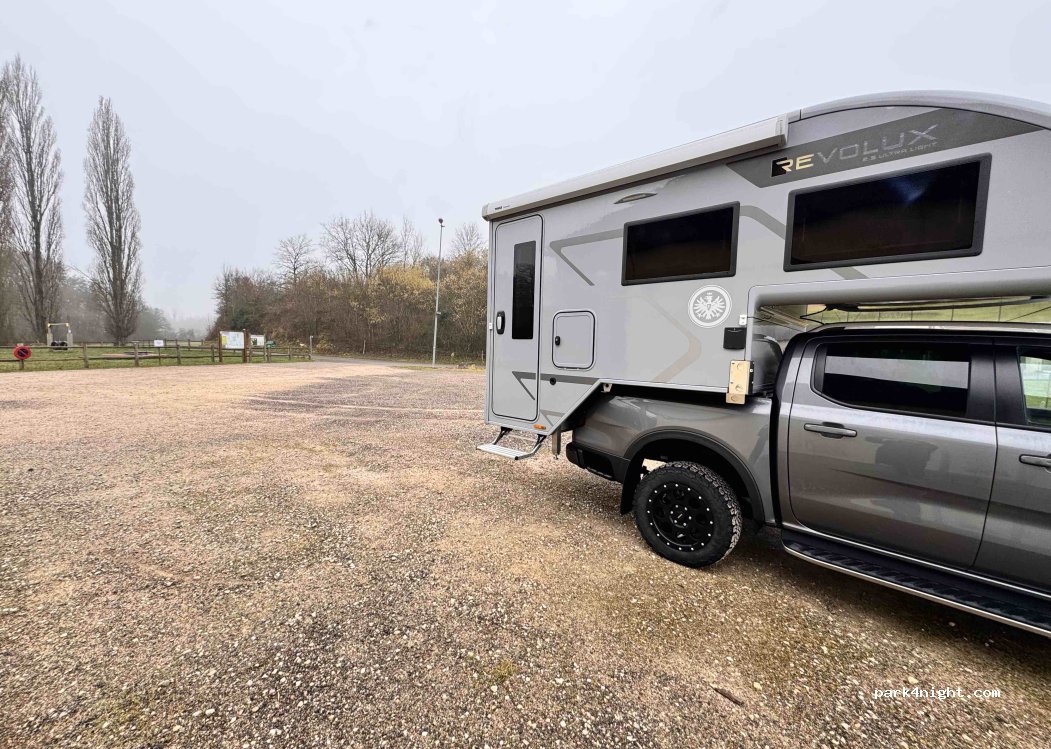 Étape très sympathique : Parking plat, nuit calme, jolie ballade forêt et champs. Parcours de santé, étang de pêche etc...