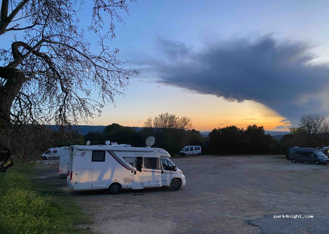 parking très bien situé pour visiter le village des bories et Gordes, dommage les nids de poule un peu partout prévoir des cales. Nuit très calme en bas du parking merci à la municipalité.