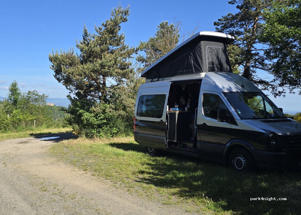 nice layby reasonably flat in places had a quiet night here with a nice walk in the morning lovely views over the Loire I'm he