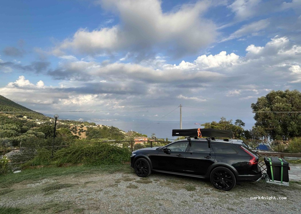 Nachmittags angefragt und den letzten Platz bekommen für abends. Sehr freundliche Gastgeberin, morgens leckeres Frühstück für 5€. Wunderschöne Aussicht auf Genua,Blick von der ersten Reihe aus.genügend Platz, nicht vollgestellt. 35€ 2 Erw. Van, Frühstück ohne strom.Anfahrt abenteuerlich,enge Serpentinen, oben ausgeschildert,etwas in den Wald fahren, dort wenden,Rest Schotter, steil, aber machbar