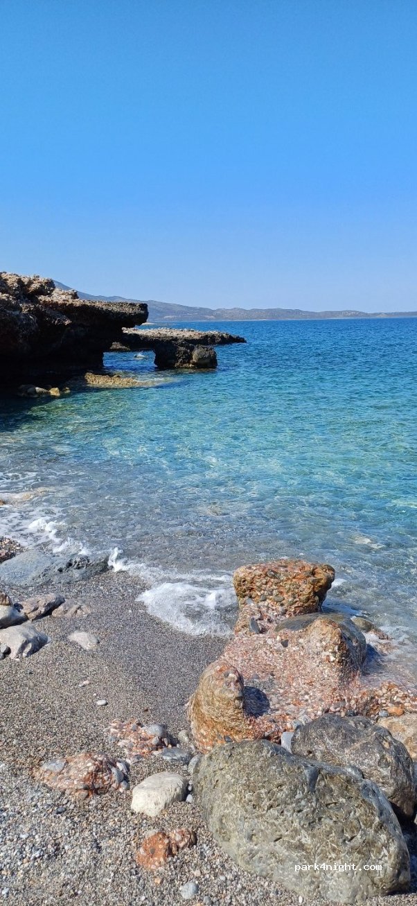 Très bel emplacement sur la plage. Beaucoup de cc mais beaucoup de places donc on ne se gêne pas du tout. Et une vue incroyable sur Monemvasia