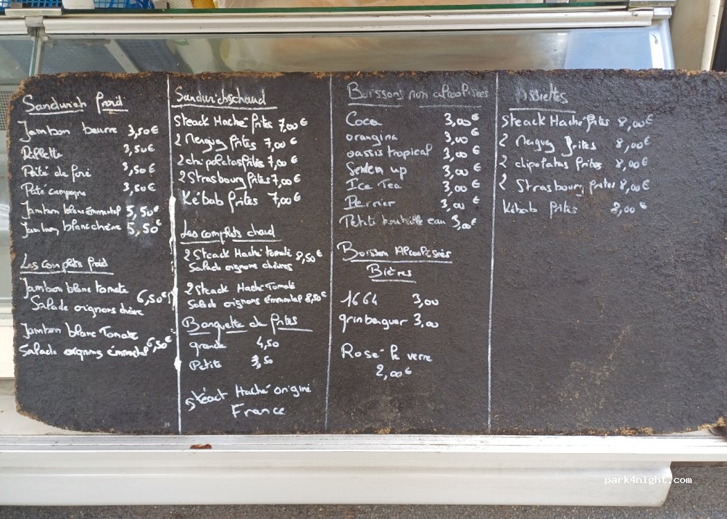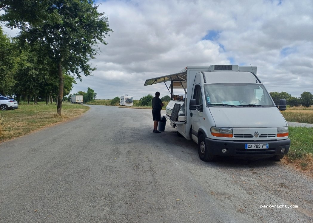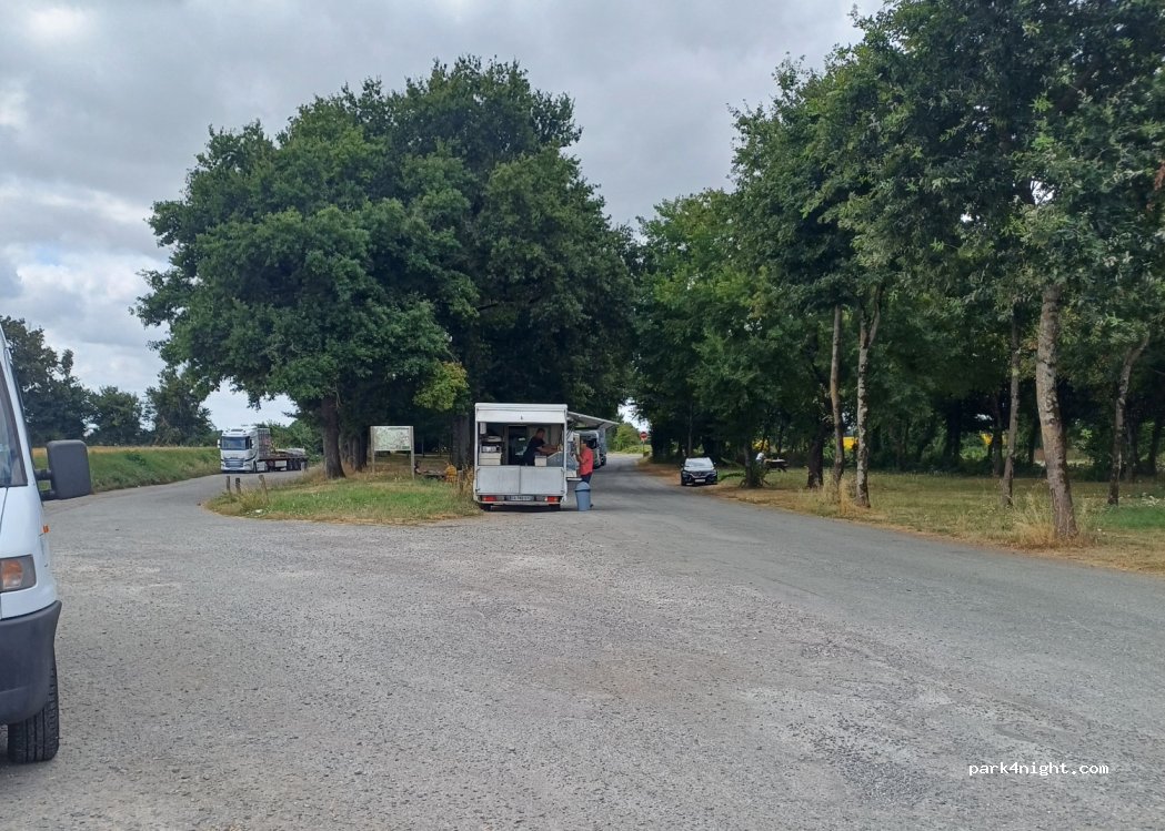 pour une pause déjeuner/détente. c'est très bien. au bord de route mais grand aire avec table de pique-nique sur herbe. un vendeur ambulant de frite et sandwichs, Steak, merguez, chipo... c'est très bien. présent de mis juillet à fin août tout les jours de 11henv à 14h30env. début juillet uniquement le week-end en septembre uniquement le dimanche. facile à se garer avec un camping car