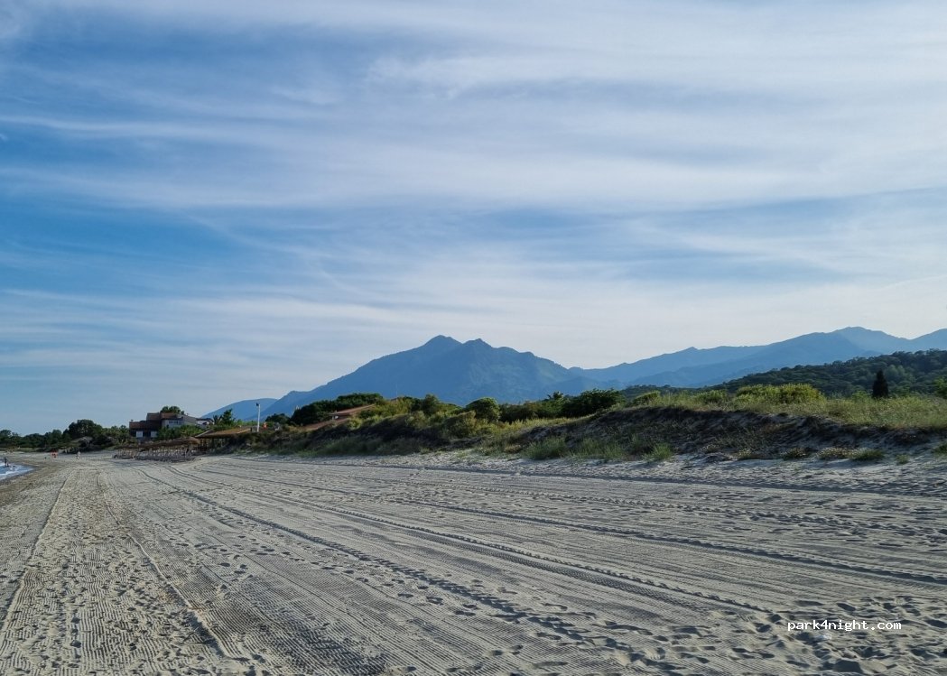“Le Miami Plage“ A simple, at first glance inconspicuous campsite. At second glance, however, the advantages become apparent: very quiet, lots of space, friendly reception, lots of shady spots, the ground is grass. If you don't like the hustle and bustle, you've come to the right place. In addition, it is a relatively cheap C-place compared to many other places in Corsica! The beach is nothing special, sand! In the morning the baker drives to the square. Because the first rows are intended for the bungalows, you cannot stand directly by the sea, which is not a problem.