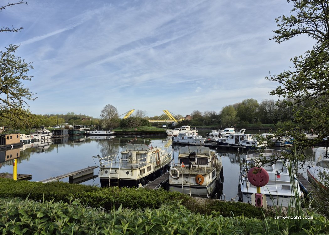 Seconde fois que nous venons dormir ici même si c'est proche de chez nous.... :) Endroit très calme et vue magnifique sur les bateaux ! Dépaysement garanti. Friterie MAXELO ouverte le midi et à partir d'avril également le soir. Pas de service mais des tables pour manger et de belles balades à faire le long du canal... Nous recommandons sans réserve !
