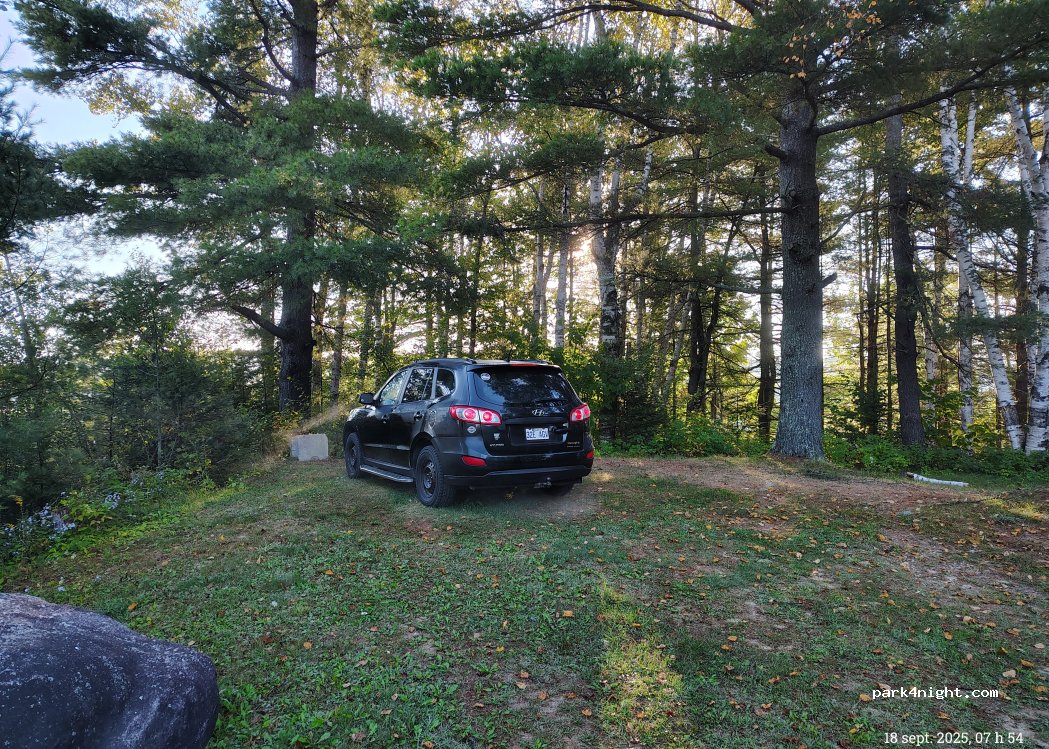 Deux/trois paliers Minimum 4 véhicules par paliers Tranquillité ++ Dans les espaces du haut. Vue super belle et eau claire du lac Simon. Pour vous aider à trouver : stationnement de terre juste de l'autre côté de la plage municipale. Pour accéder en haut, il y a une petite côte asphalté visible tout simplement. Une becosse sur le terrain de la plage municipal accessible en tout temps.