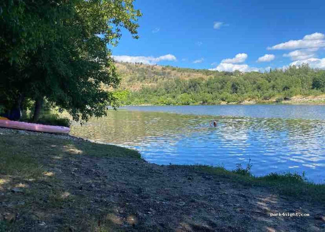 Quiet family campsite on the banks of the Ardèche with a private beach. 3 motorhome pitches away from the van and tent by the river. Good sized pitches. Great simplicity and kindness at the top with a free offer of icebread leaflets for the various activities to do in Ardèche. A collective barbecue charcoal and wood provided. Clean toilets and showers. During the hot weather, a collective fridge is made available free of charge in the camps. Value for money 5 stars without hesitation.