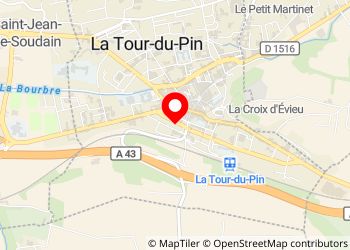 Zeer grote parkeerplaats zonder service. Dicht bij station La Tour du Pin voor Grenoble, Lyon en Chambéry en dicht bij de afrit van de snelweg. Dichtbij de stad met alle winkels.