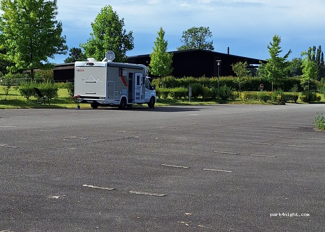 Parking très grand et très calme avec toilettes autonettoyant sur place poubelles et table de pique nique au bord d’un etang. J’enlève une étoile car le camion de ramassage des poubelles a pris à malin plaisir à bien secouer le container à 5h du matin pendant 5-10min