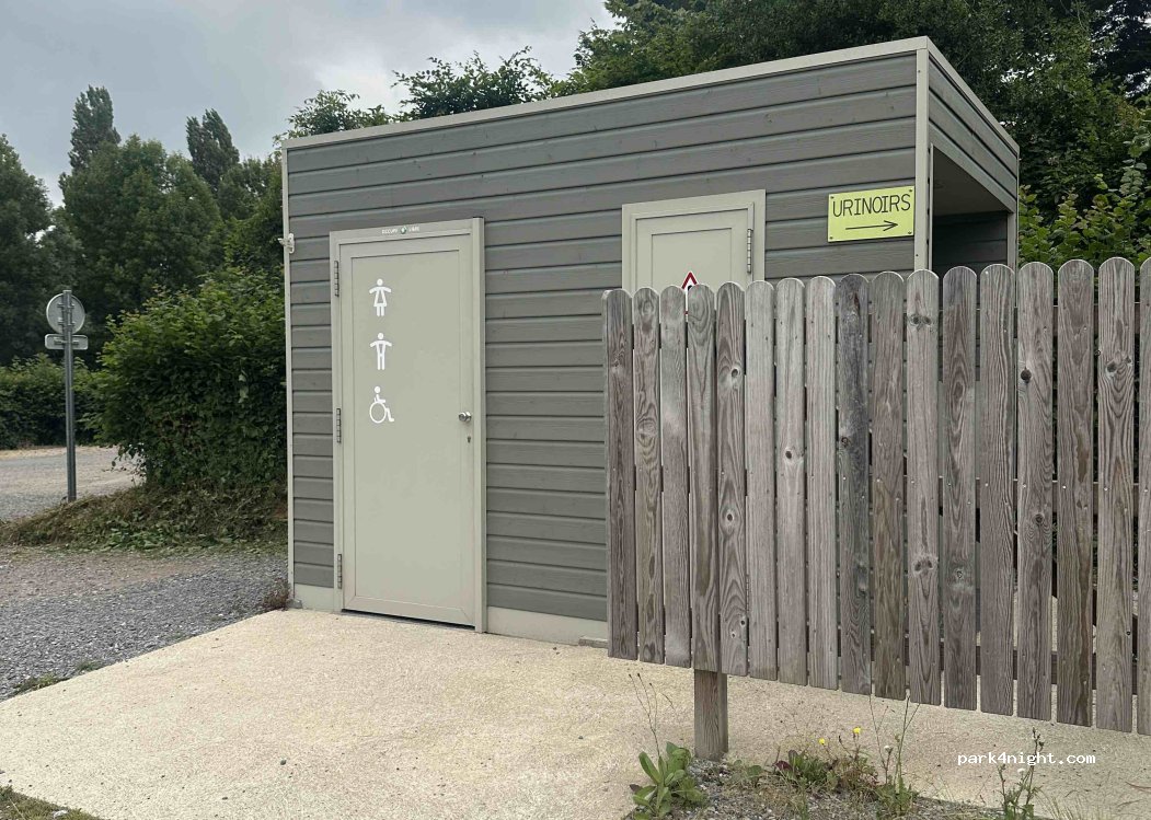 Parking avec toilette public (propre et autonettoyante). Il n'y a plus service accessible, il faut aller au camping (payant).