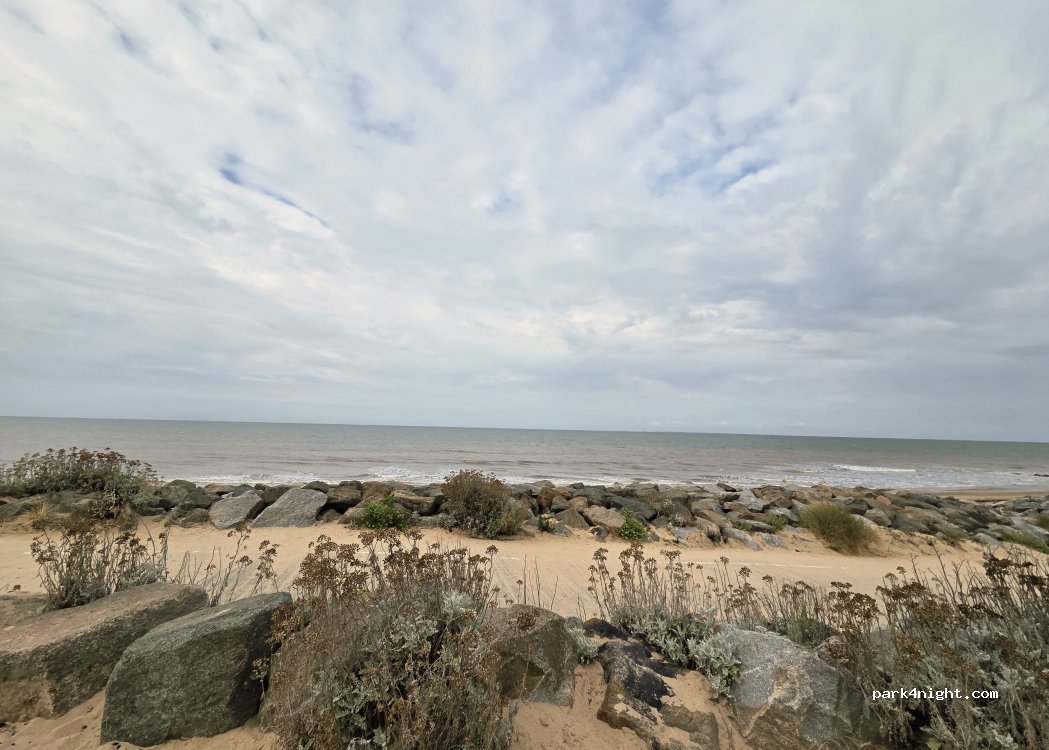 Parkîng au bord de mer, calme, pas de service, mais une vue magnifique. Pas de limite de hauteur.