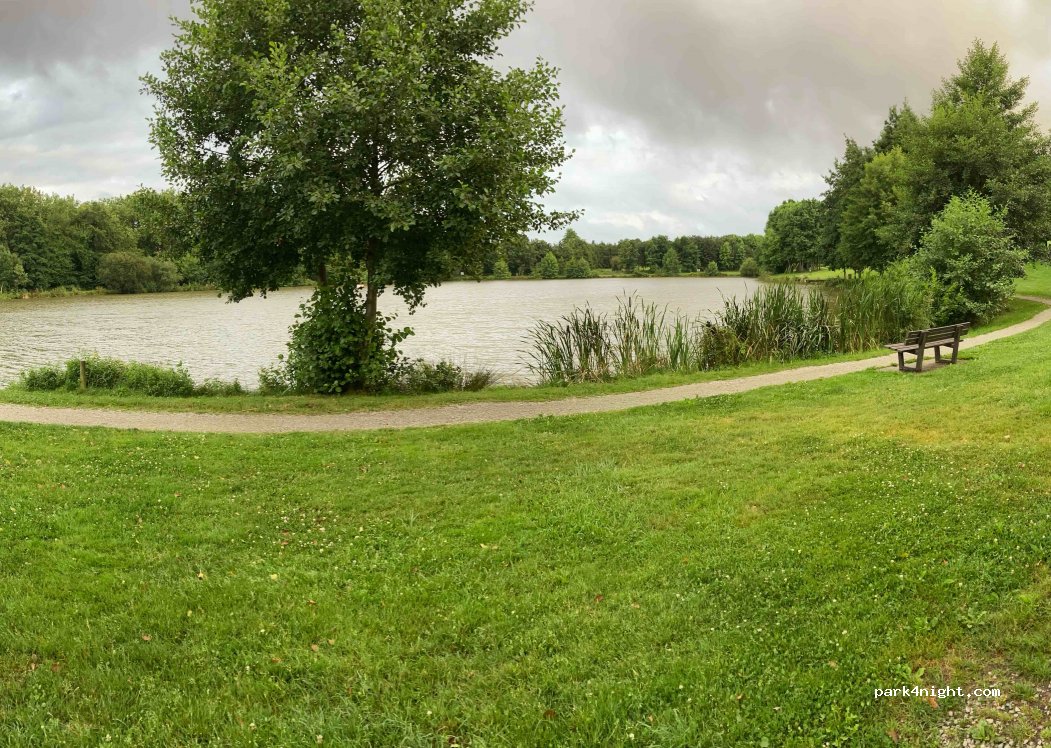 Parking situé à 3 mètres de la route, assez agréable avec la vue sur un lac. parcours sportif de 1600m. aire de jeu pour les enfants.