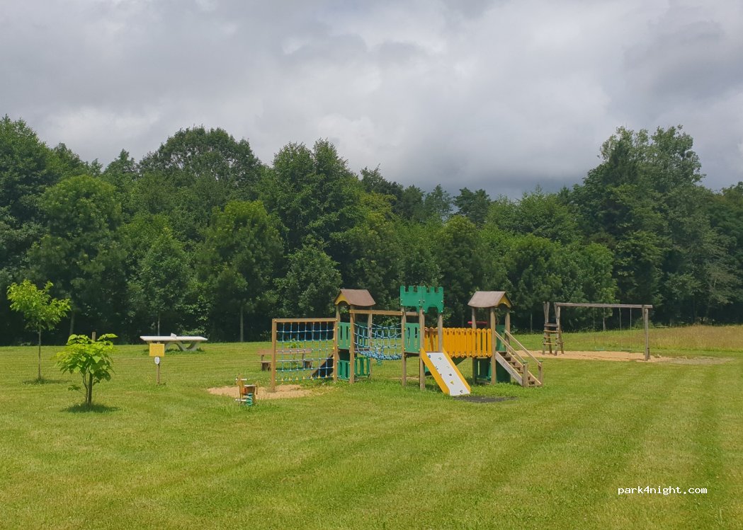 Camping très calme aucune possibilité de vidanger les eaux grises ni la K7 bien que le gérant autorise de vidanger dans les WC, pour le plein d'eau c'est possible. Les sanitaires et évier sont extrêmement propres le calme est au rendez-vous 13 € pour une étape sans plus en ce qui me concerne. La 4g inexistant, quant à la wifi il faut être à proximité du bureau. aire de jeux pour les enfants
