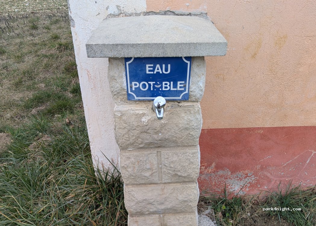 Petit aire de repos avec table en pierre, la route est de l’autre côté du canal. Paysage sympa. Eau potable à côté du bâtiment avec bonne pression