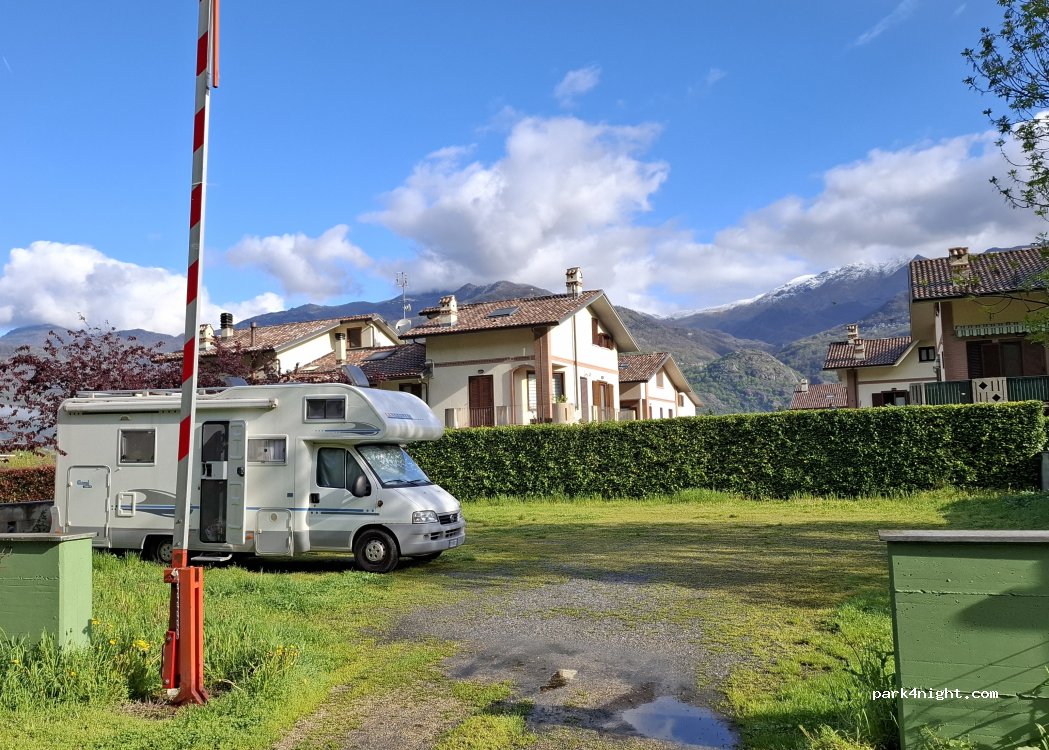 La barrière était ouverte avec accès à l'eau et à la vidange. Endroit très calme avec jeux pour enfants juste à côté et départ pour rando à la Sacra de san Michele (ça monte beaucoup...)