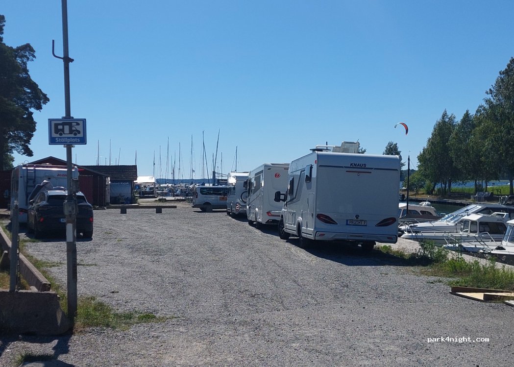 Gravel parking lot directly at the port of Dalarö. View of the water. Kayak rental next door. Friendly owner.