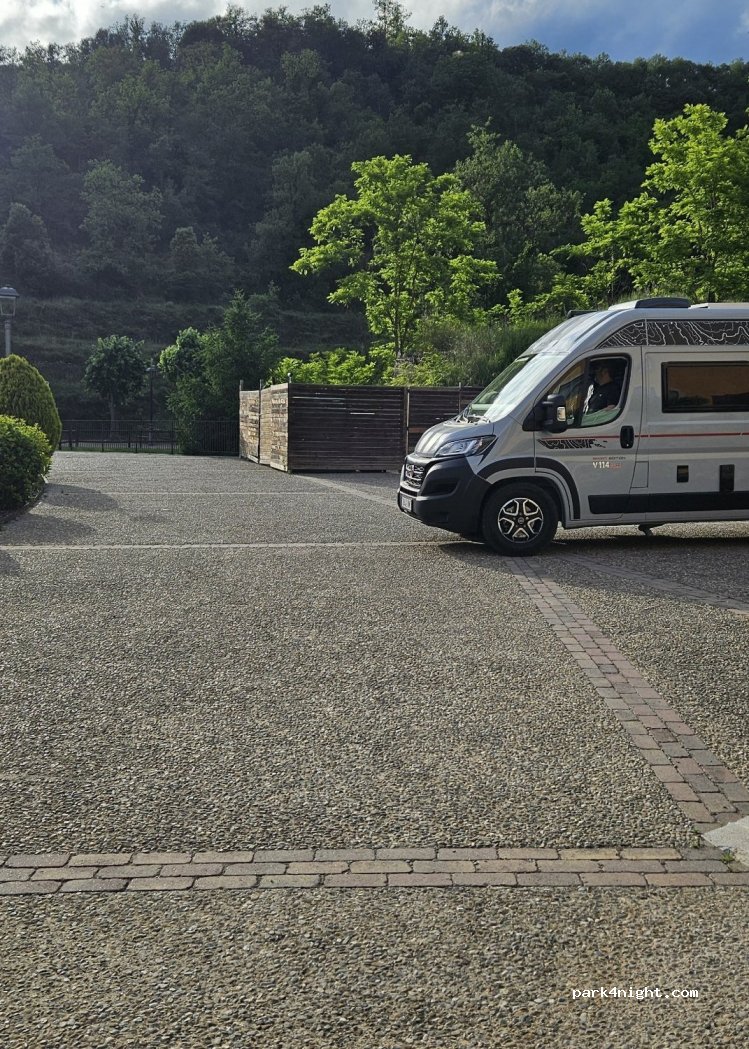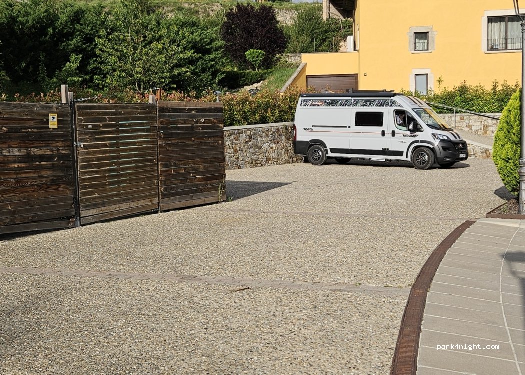 Tarif aire camping-car : 8€ la nuit pour 2 personnes sans services (vidange possible)
