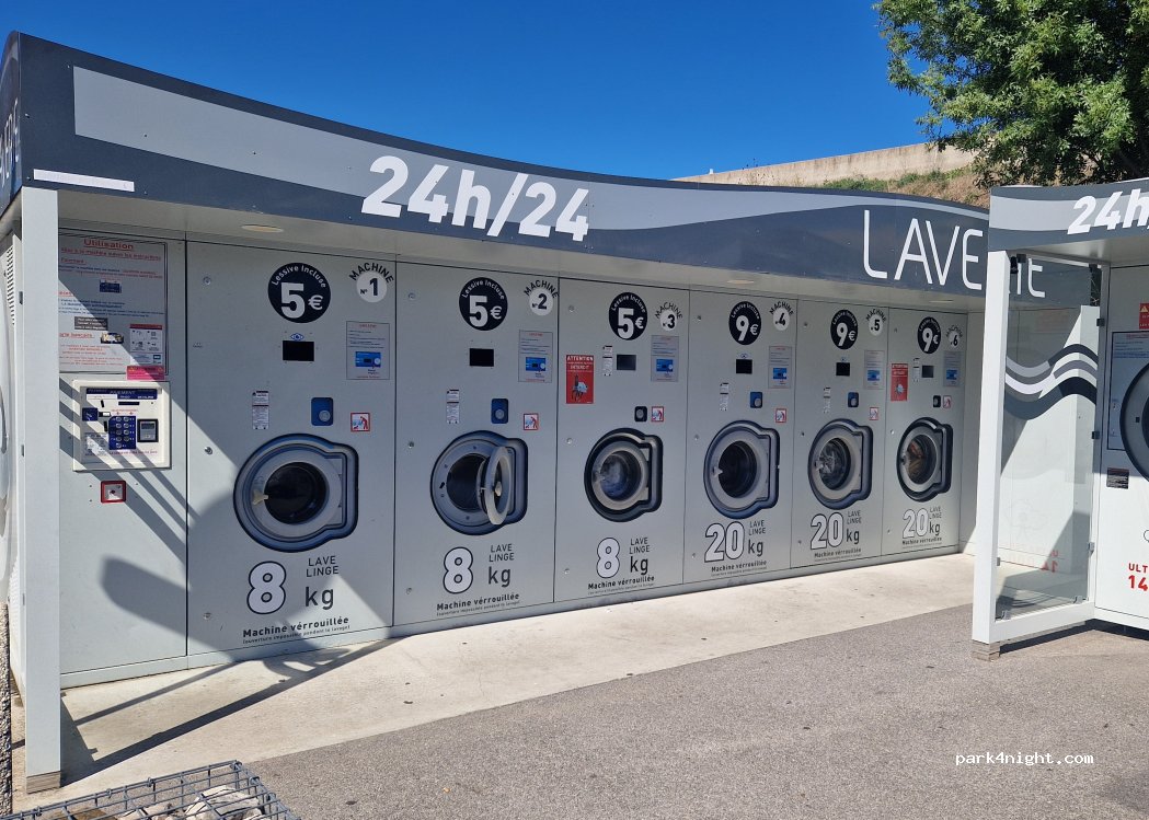 Bonne laverie 24/24, tout fonctionne bien, je viens de mettre à jour la fiche Park4Night.