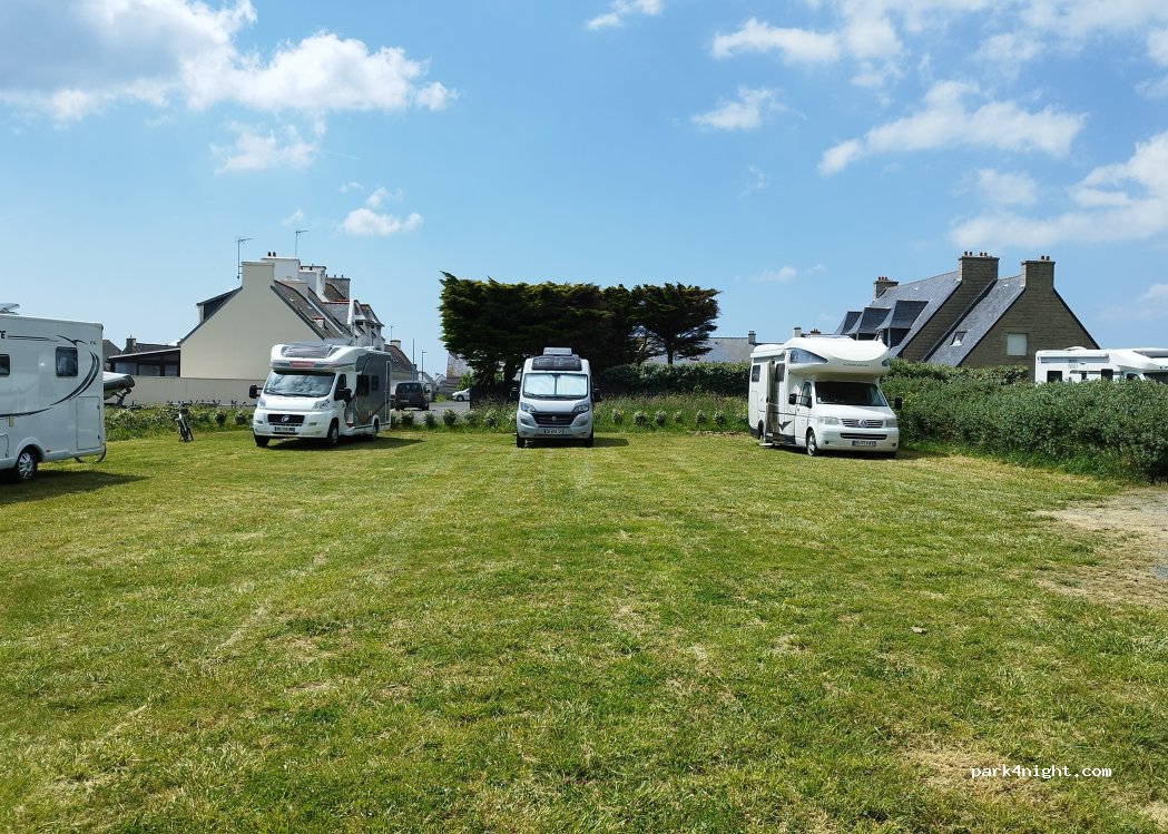 À 2 pas de l'océan, avec un magnifique coucher de soleil en prime. Idéal pour un départ rando ou vélo. Pas de services mais la tranquillité. Peu de cc cette nuit. 4 euros c'est très correct. Vidange possible pas très loin. La Bretagne sauvage.