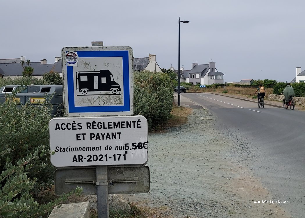 Aire très calme et bien située. proximité GR, la pointe de Penmarc'h et son phare, saint Guénolé, chemin à pied ou à vélo, merveilleux ! Le paiement de 5, 50€ se fera directement à l'employé de mairie (très sympathique) en fin de journée ou le matin vers 8:30. Parfait !
