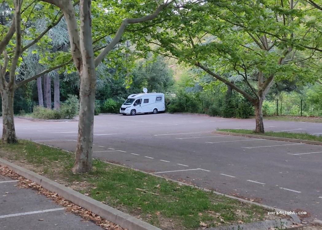 Parking agréable ombragé et ensoleillé, au choix, nous nous sommes garés facilement. Cette nuit nous sommes deux camping-cars et un fourgon. Endroit calme. Merci de nous autoriser à passer la nuit.