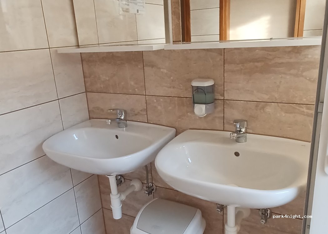Beautiful and quiet campsite. The toilets and showers are extremely clean, the rest of the facilities is also great: washbasins outside and possibility to empty waste water and chemical toilet. The plots are quite small for a large camper and awning, but perfect for smaller campers. We paid 30euro for one night for 2 people, a dog and a camper. Would definitely recommend :)