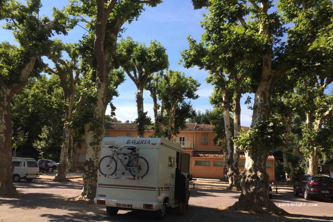 Bel emplacement, un peu délicat pour y arriver pour un camping-car de plus de 7 m. Un boulodrome et son petit kiosque, lui aussi sous des platanes centenaires bien entretenus.