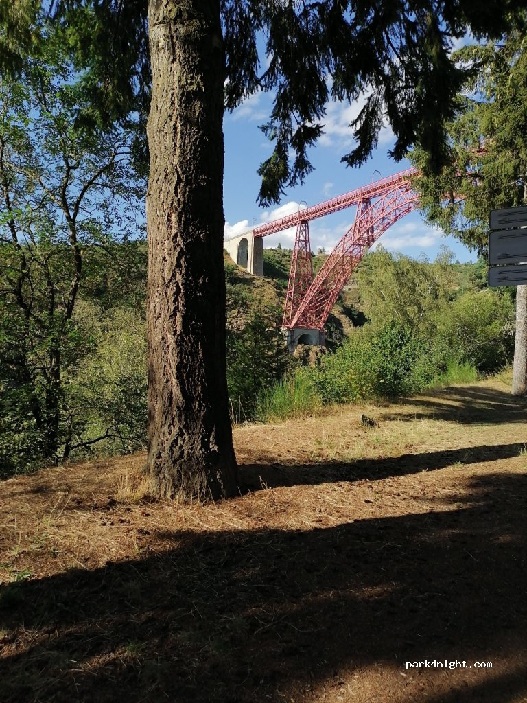 Petit parking en bord de route, idéal pour voir le magnifique ouvrage du pont Eiffel". Après avoir lu les différents totems, expliquant les incroyables constructions, une pensée pour le dur labeurs des ouvriers d'époque. Nous continuons...