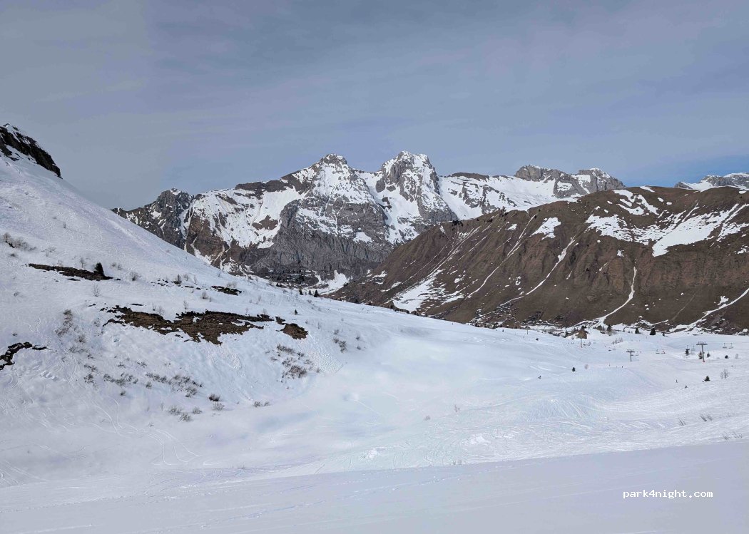 Camping l'Escale*** un grand confort pour les camping-caristes qui bénéficient certes de petits emplacements mais suffisamment grands quand la neige est là. Sur place même en hiver, vidange eau grise, eau noire, cassette, plein d'eau. pain à l’accueil de 8h à 10h. En plus, piscine, salle de jeux, salle télé, mais le top des salles pour sécher vos chaussures de ski, vos vêtements.