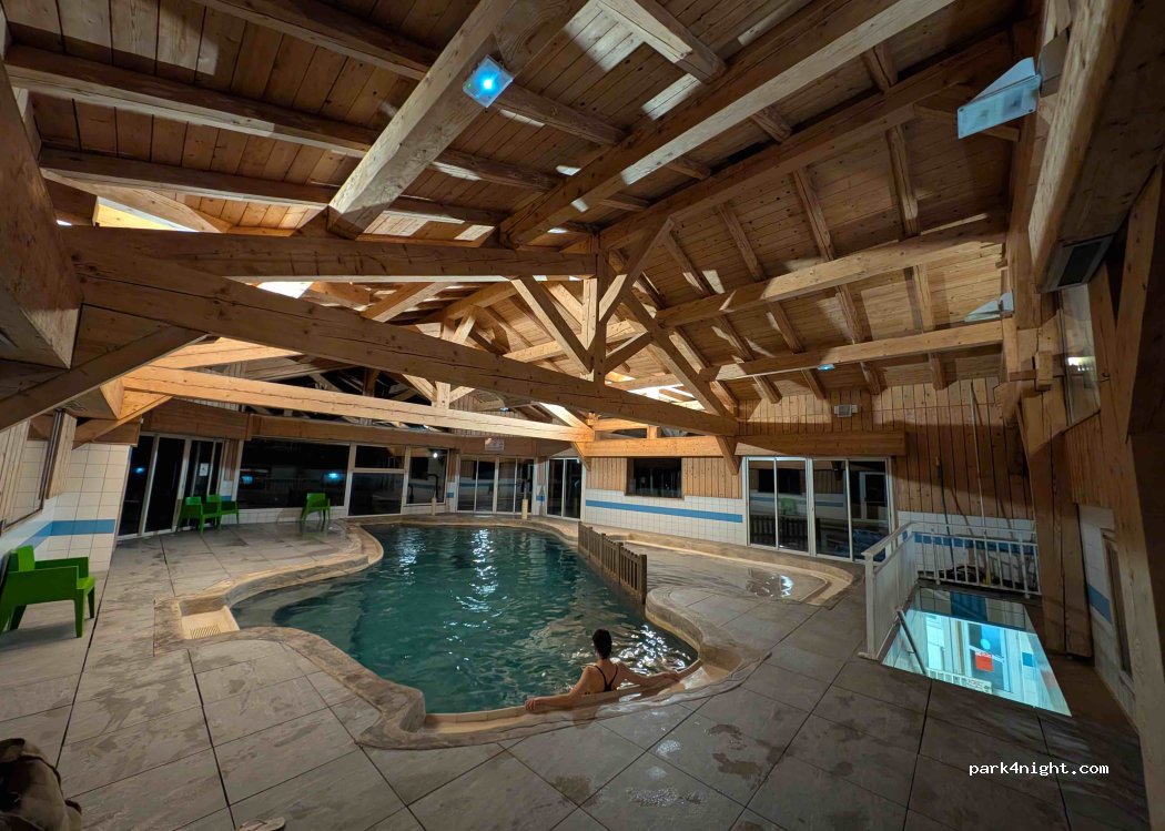 Nous y avons passé 1 nuit en caravaneige, un peu cher, 53.80 € pour un couple. 2 enfants et 6 ampères, mais profiter de la piscine après le ski c’est agréable, contrairement aux autres commentaires l'eau était bien chaude et pourtant je suis frileuse. Il est vrai que pour sortir de la piscine c’est un peu sale mais c’est du à la conception des vestiaires. Sinon très bon accueil et sanitaires au top.!